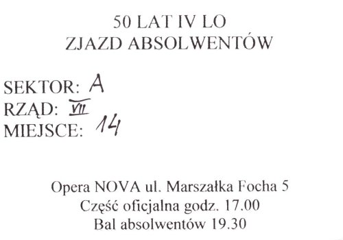 Bilecik upoważniający do wstępu na część jubileuszową odbywająca się w Operze.