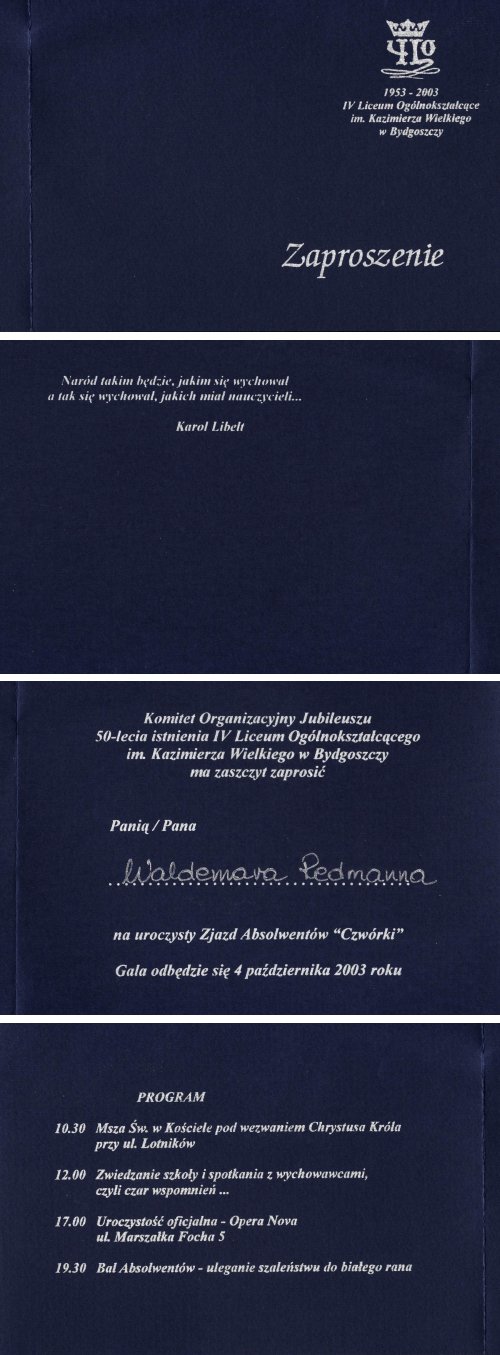 Zaproszenie na jubileusz szkoły wraz z programem.