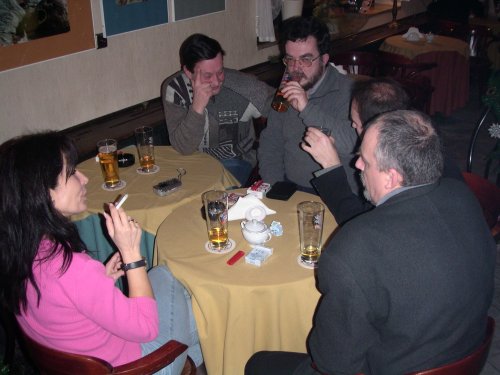 Od lewej: Jarek Zdanowicz, Andrzej Karpisiewicz, Zbyszek Kozłow, Jurek Wierzbowski i samotnie z przodu: żona Zbyszka Kozłowa - Marzena