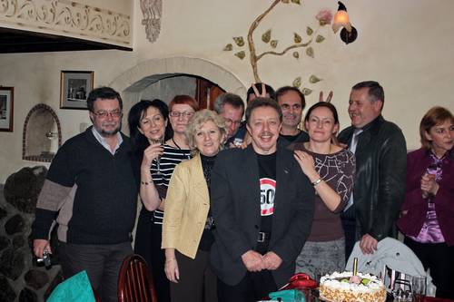 Ostatnie jubileuszowe nasze spotkanie odbyło się w restauracji Medea. Frekwencja nam dopisała, co widać na załączonych fotkach. Tym razem było dwóch jubilatów: ja i Grzegorz. Otrzymaliśmy moc przemiłych życzeń na dalsze półwiecze życia oraz wspaniałe, nieraz bardzo zaskakujące prezenty. Jurek wręczył nam okolicznościowe, przez siebie wykonane, wspaniałe dyplomy. Był szampan, tort, zakąski i oczywiście coś mocniejszego. Te fantastyczne fotografie z naszego spotkania zawdzięczamy Mariuszowi - webmasterowi tej strony internetowej.