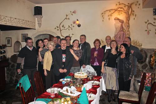 Ostatnie jubileuszowe nasze spotkanie odbyło się w restauracji Medea. Frekwencja nam dopisała, co widać na załączonych fotkach. Tym razem było dwóch jubilatów: ja i Grzegorz. Otrzymaliśmy moc przemiłych życzeń na dalsze półwiecze życia oraz wspaniałe, nieraz bardzo zaskakujące prezenty. Jurek wręczył nam okolicznościowe, przez siebie wykonane, wspaniałe dyplomy. Był szampan, tort, zakąski i oczywiście coś mocniejszego. Te fantastyczne fotografie z naszego spotkania zawdzięczamy Mariuszowi - webmasterowi tej strony internetowej.